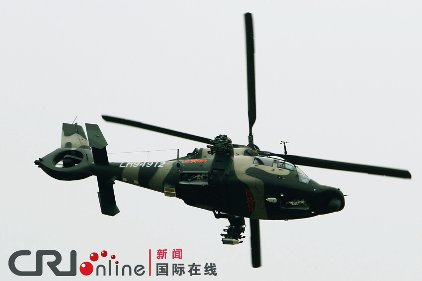 解放軍直-9WZ武裝直升機進行飛行表演。戴爽 攝