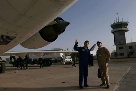 機(jī)務(wù)人員進(jìn)行飛機(jī)狀態(tài)檢查。