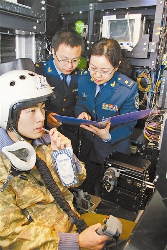 空軍某研究所科研人員與飛行員一起做飲水試驗 李曉龍攝