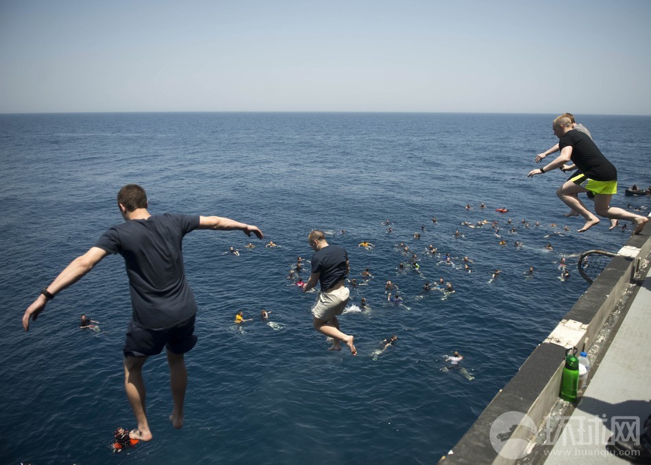 據美國海軍網報道,當地時間5月12日,正在阿拉伯海北部執行部署任務的美國海軍尼米茲級航空母艦艾森豪威爾號(CVN 69)組織艦員進行跳水游泳訓練。這不僅僅是一項休閑娛樂活動,也是訓練艦員在緊急情況下的跳水逃生能力。