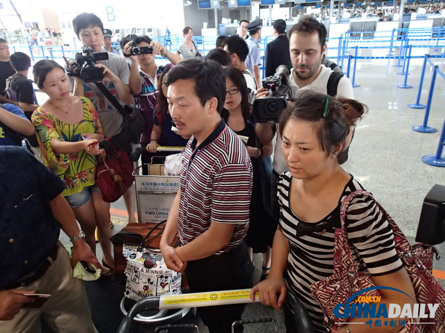 2013年7月8日,韓亞空難遇難者家屬從上海出發赴美料理后事。