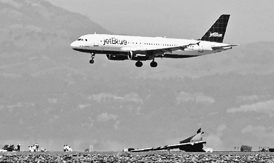 7月9日,一架美國(guó)捷藍(lán)航空公司客機(jī)準(zhǔn)備降落在美國(guó)舊金山國(guó)際機(jī)場(chǎng)。截至當(dāng)日,舊金山國(guó)際機(jī)場(chǎng)已逐步恢復(fù)正常運(yùn)營(yíng)。新華社發(fā)