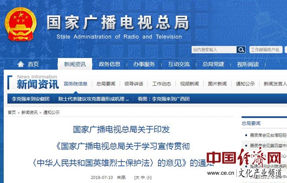 經濟日報-中國經濟網北京7月11日訊 近日,國家廣播電視總局印發《國家廣播電視總局關于學習宣傳貫徹〈中華人民共和國英雄烈士保護法〉的意見》(以下簡稱《意見》)的通知。《意見》指出:鼓勵和支持廣播電視播出機構、信息網絡視聽節目服務單位、廣播電視節目制作經營機構等創作以英雄烈士事跡為題材、弘揚英雄烈士精神的專題片、紀錄片、訪談節目、綜藝節目、電視劇、網絡視聽節目等;鼓勵英雄烈士題材的劇目積極申報電視劇選題規劃、網絡原創視聽節目規劃。