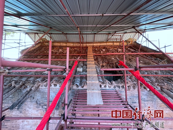 參與修繕的山西一建集團有限公司總經理、文保建筑修繕分公司文物責任工程師王晉君從事這個行業20多年了,他告訴記者,盡管圓融寺在當時已經引起了高平市政府和學術界關注,被重新認定為宋、金建筑。但長期以來,它并沒有被評定為文保單位。只有門殿的山墻上,貼著“高平市不可移動文物”的鐵牌,但牌子上的名字卻是“中村春秋樓”。這個“中村春秋樓”指的也是圓融寺里的東朵殿,為清代風格。目前南殿經過發掘,還保存著精美的宋代鴟吻和脊梁,已經架起了腳手架,下一步如何修,方案還在討論中。