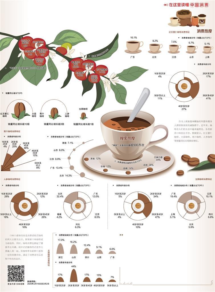 工作時沖一杯美式提神、午飯后來一杯拿鐵解膩、周末約好友“打卡”網紅咖啡店……近年來,我國咖啡消費穩步提升,市場空間加速擴容,咖啡正融入消費者的日常生活。