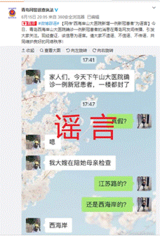 此外,記者從 @青島網警巡查執法 獲悉,網傳“西海岸山大醫院新增一例新冠患者”也系謠言。