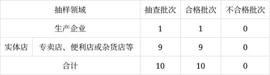 本次任務共10批次,實際抽到10批次,在生產企業和實體店中抽取,具體情況見表1。
