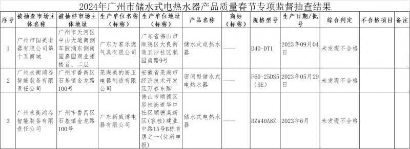 近日,廣州市市場(chǎng)監(jiān)督管理局對(duì)儲(chǔ)水式電熱水器產(chǎn)品質(zhì)量進(jìn)行了專(zhuān)項(xiàng)監(jiān)督抽查,共抽查了3批次樣品,經(jīng)檢驗(yàn),未發(fā)現(xiàn)不合格。