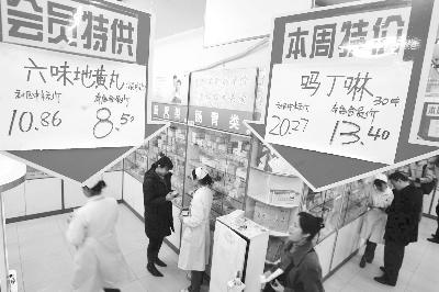 2月26日,利君堂大藥房北京安定門店內,市民正在選購特價藥,藥店里貼出了與社區醫院零差價藥品的價格對比。衛生體制改革依然是本屆兩會的關注焦點之一。本報記者薛珺攝
