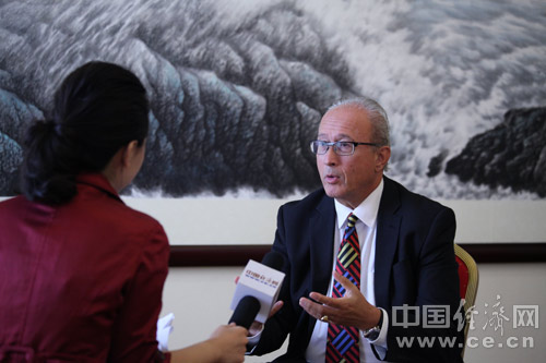 由中國道路交通安全協(xié)會、中國汽車技術研究中心和中國經(jīng)濟網(wǎng)共同主辦的“2013中國道路交通安全論壇”于8月30日在北京首都大酒店舉行。圖為國際道路交通安全協(xié)會主席高斯接受中國經(jīng)濟網(wǎng)記者采訪。中國經(jīng)濟網(wǎng) 裴小閣/攝